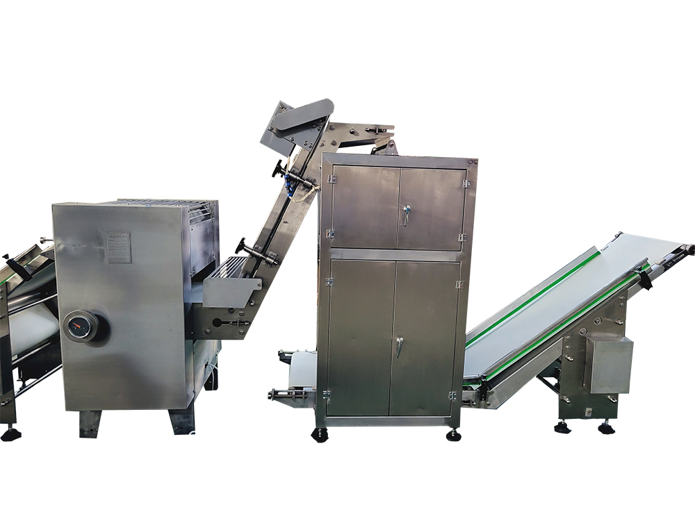 4、可根據(jù)不同餃子機(jī)要求軋制不同 規(guī)格厚度及寬度的面帶,面帶經(jīng)過分切后自動(dòng)打卷,操作簡(jiǎn)單,安全可靠。