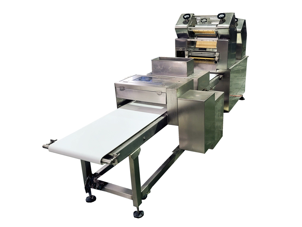 3、面團經(jīng)過復合、多輥壓延,面帶自然延伸,再由切刀切面,使面條達到更加理想的效果。