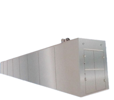 本機(jī)為隧道式多層干燥爐,爐內(nèi)干燥工作面分為10層,由10臺(tái)變頻調(diào)速電機(jī)分別控制,能理想的實(shí)現(xiàn)米雪餅餅坯的干燥。